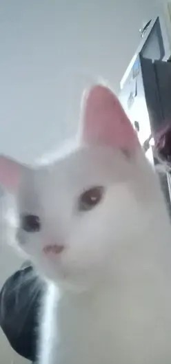 Chat mâle au pelage blanc et poil court. Sa queue est brune / rousse et i la une tâche grise autour de l’œil. Il a les yeux bleus, est très affectueux mais a très peur des voitures Il possède un tatouage dans l'oreille droite mais celui-ci est effacé.