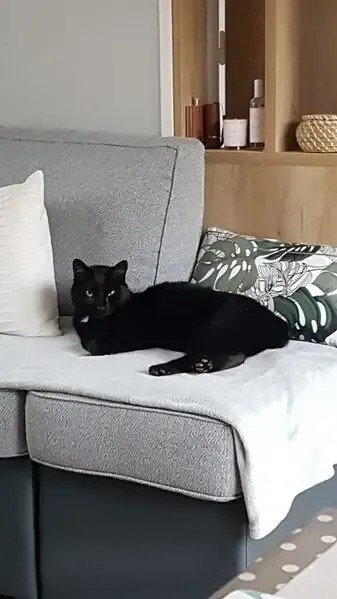 Depuis quelques temps cette chatte, très câline, propre, douce, nous rejoint sur le camping du pré des moines chaque we et semble en demande d attention, elle mange puis se réfugie sur notre lit et nous avons beaucoup de mal à la faire ressortir