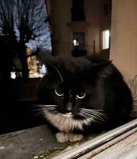Ce chat viens régulièrement à ma fenêtre, il a l’air de vivre dehors depuis quelque temps. Il est un peu méfiant envers les humains mais très curieux de connaître mon chat