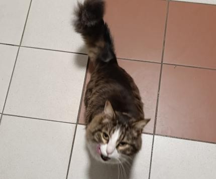 Couleur: marron, blanc | Pelage: tigré, long