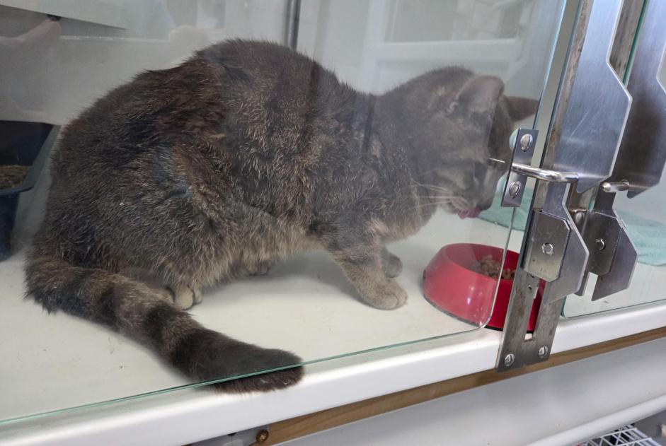 Chat trouvé à Nazelles-Négron Chat Race: Croisement Sexe: Mùle Taille: 40cm Poids: 3.3kg Couleur: Gris / Tigré