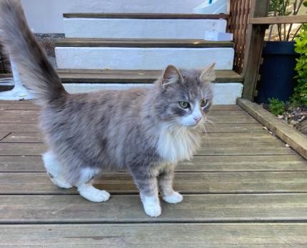 Couleur: gris, beige, blanc | Pelage: tacheté, long | Décédé: NON