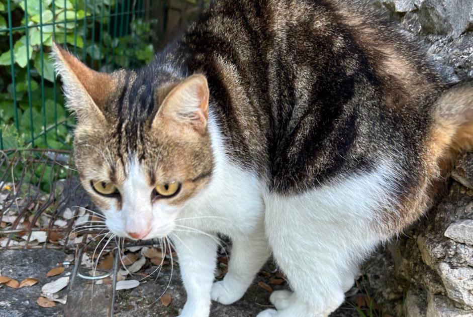 Chat trouvé à Saint-Saturnin-lÚs-Apt Chat Race: Européen Taille: 40cm Poids: 5kg Couleur: Blanc / Brun écaille / Brun