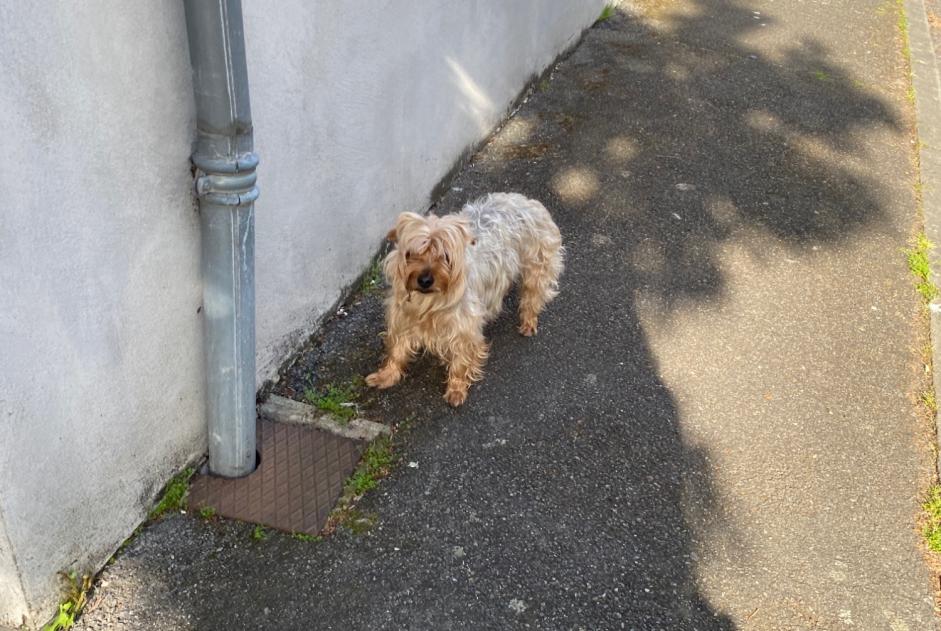 Chien trouvé à Castelginest Chien Race: Croisement Taille: 28cm Poids: 6kg Couleur: Doré / Gris