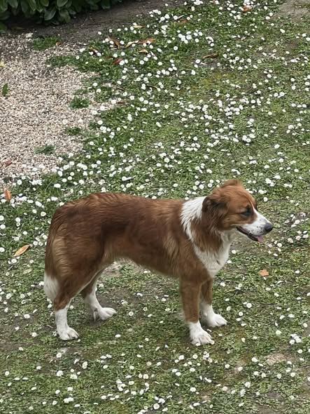Ce chien, type Berger/border collie, vient depuis 3 jours dans mon jardin à Fondettes.