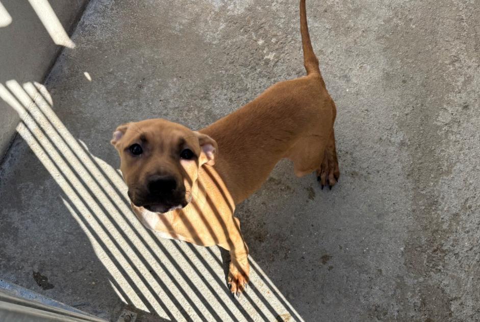 Chien trouvé à Houilles Chien Race: Croisement Sexe: Femelle Taille: 40cm Poids: 15kg Couleur: Brun doré / Blanc Puce électronique: Non Détails collier Couleur: NoirType du collier: Cuir