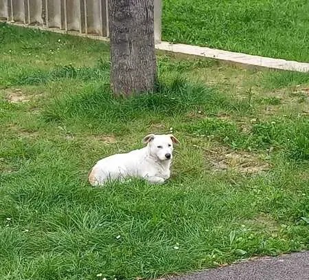 Petit chien blanc retrouvé par une de mes collègues auprès de chez elle rue de l'Industrie à Ivry-sur-Seine.