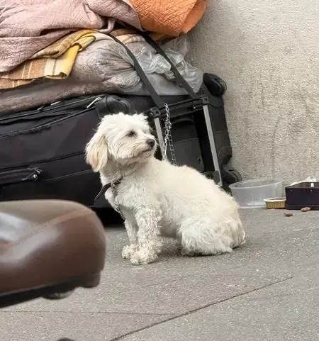 Femelle, bichon, maltais ou coton avec un SDF Av Kleber, quelques tâches beige foncé sur le bout des oreilles et sur le dos chienne peureuse