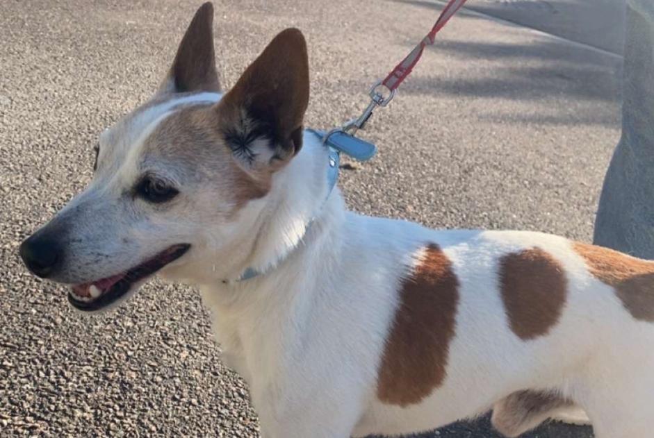 Chien trouvé à Rosières-près-Troyes Chien Race: Jack Russell Terrier Sexe: Mâle Taille: 30cm Poids: 8kg Couleur: Blanc / Roux