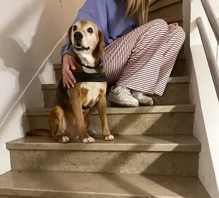 Plutôt beige de taille moyenne avec un harnais et un collier noir